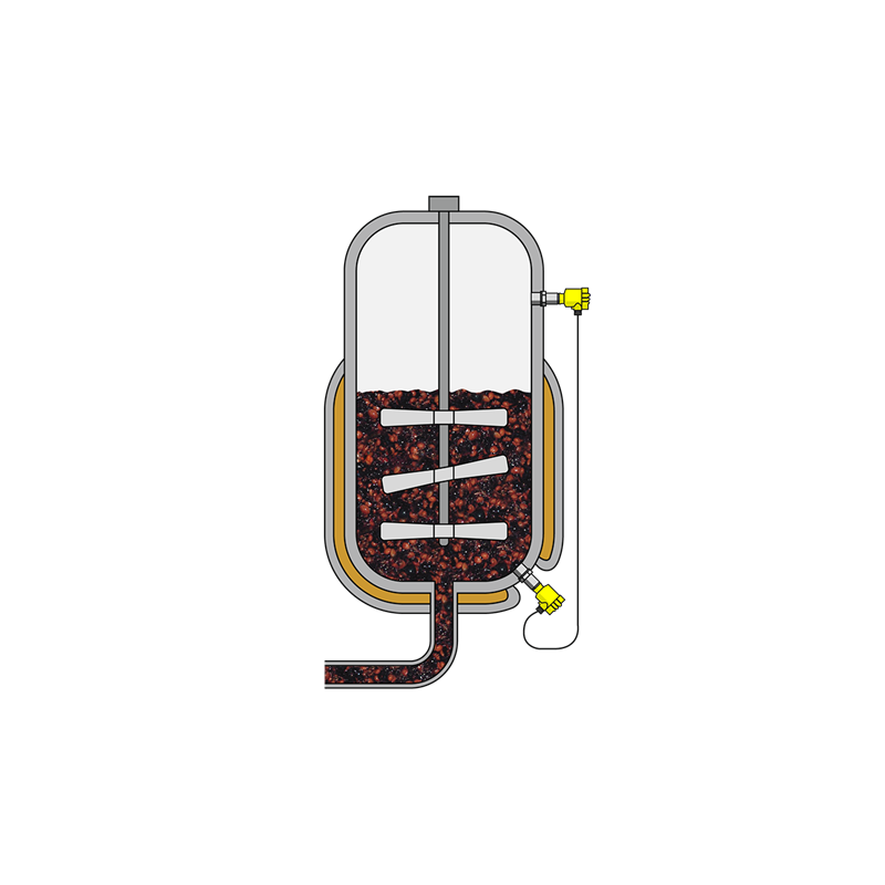 La fruta y los ingredientes para hacer mermelada se pesan, se introducen en un depósito de vacío cerrado a una temperatura de +65 ºC a +85 ºC.  Los transmisores de presión monitorizan el proceso de cocción de la mermelada. Uno mide la presión superior y el otro, la presión total, el nivel se calcula de forma precisa por diferencia de presiones.